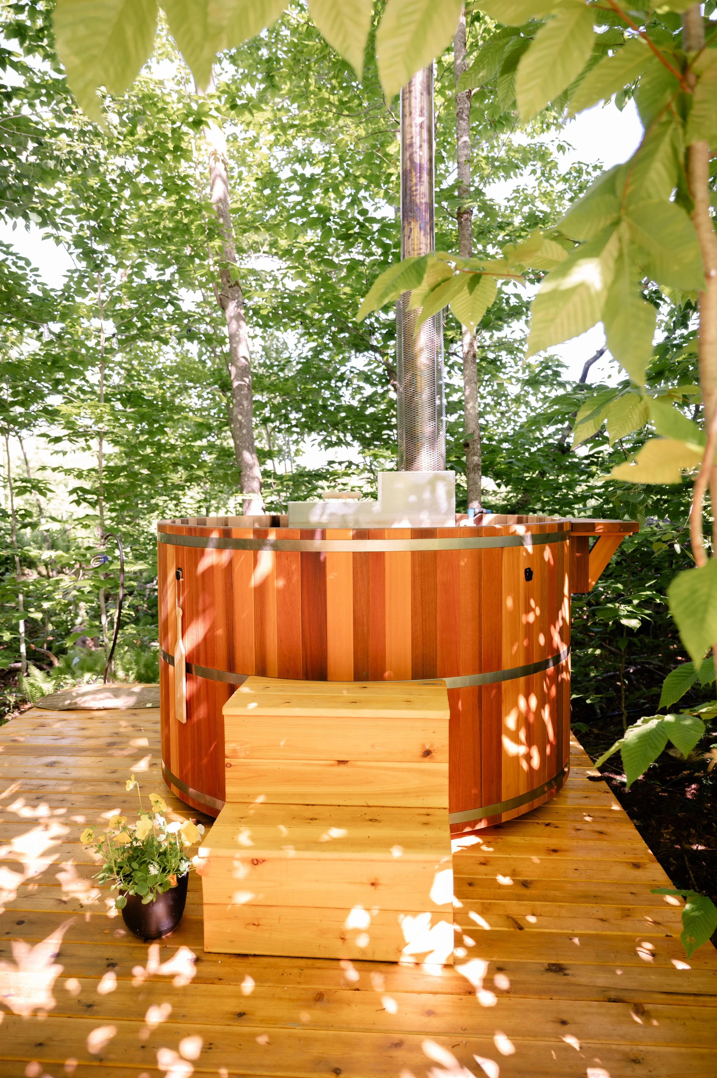 Surrounded by 90 acres of beautiful Maine woods, the cabin offers a perfect hideaway for anyone looking to relax, escape the world and enjoy a nature retreat. The A-Frame is off-grid, solar powered and features a wood fired cedar hot tub and grass strip airplane runway (51ME).